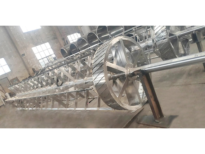 4、改變刮板溝槽旋轉(zhuǎn)方向,可以調(diào)節(jié)物料在蒸發(fā)器的打理時間。